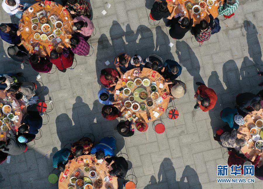 11月2日,南京仙林街道仙林新村社區(qū)居民參加千家宴(無人機拍攝)。  新華社記者 季春鵬 攝