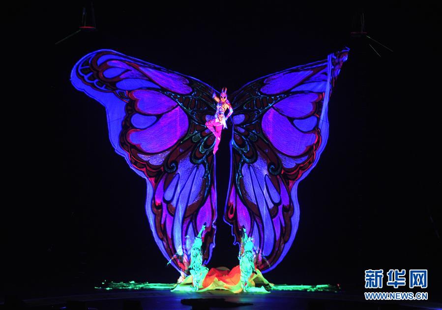 11月3日,來(lái)自俄羅斯的演員在表演《“蝴蝶”——夜光空中飛人》。  新華社記者 牟宇 攝