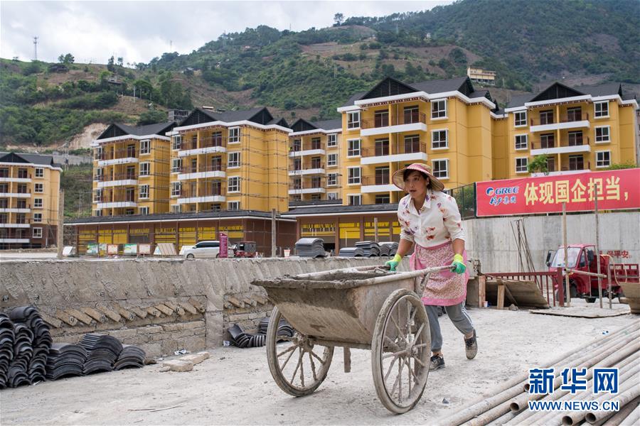 6月26日,工人在大興地鎮(zhèn)維拉壩“珠海小區(qū)”內(nèi)施工。新華社記者秦晴攝