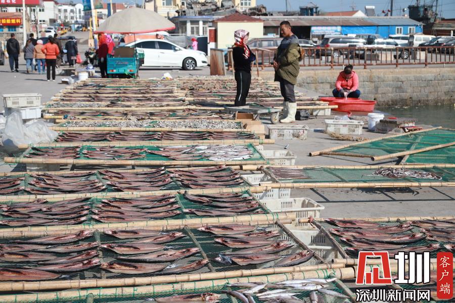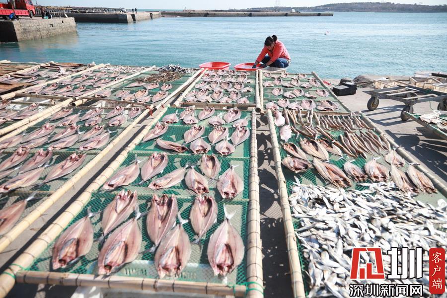 在暖陽之下,成片晾曬的海魚干成為了漁家一道獨(dú)具特色的民俗景象。