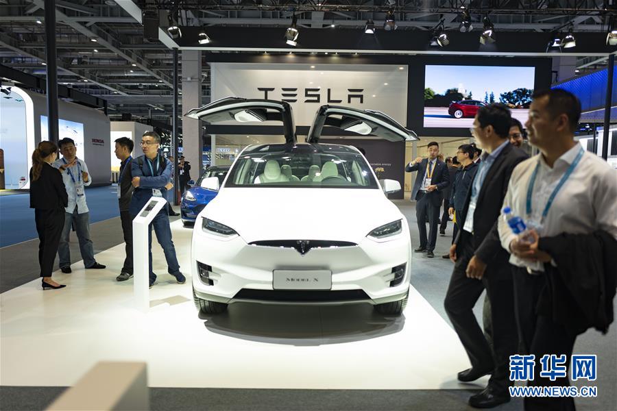 11月5日,參觀者在第二屆進(jìn)博會汽車展區(qū)特斯拉展臺參觀。新華社記者普布扎西攝