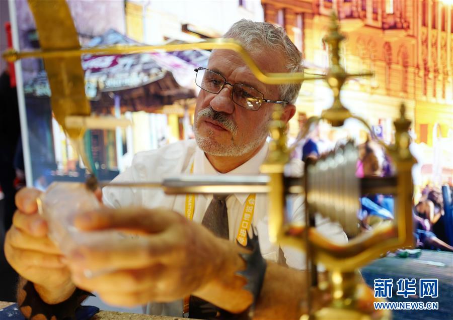 11月5日,捷克玻璃雕刻師伊日·特薩在捷克國家館里展示玻璃雕刻技藝。在上海舉行的第二屆中國國際進口博覽會上,捷克玻璃雕刻師伊日·特薩在捷克國家館里展示高超的技藝。伊日·特薩在創(chuàng)作中運用現(xiàn)代技術(shù)——熔接,融入新穎的想法,以其高超的工藝和藝術(shù)才華,獲得多項國際獎項。新華社記者普布扎西攝