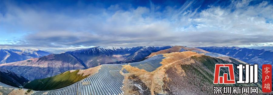 位于海拔3900米的四川省阿壩州小金縣大壩口村,場(chǎng)面壯觀的光伏發(fā)電廠占據(jù)了整個(gè)山脈。