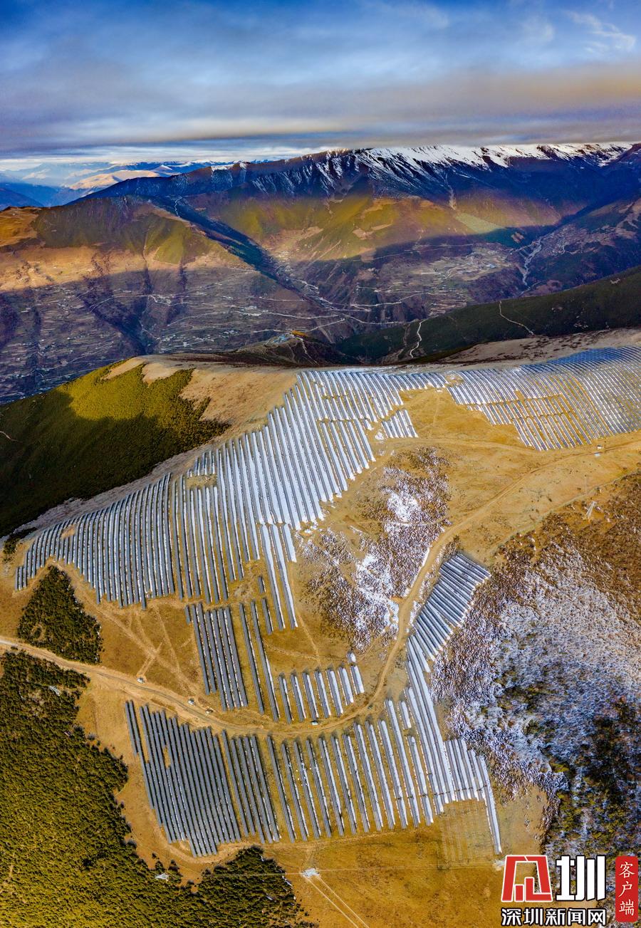 位于海拔3900米的四川省阿壩州小金縣大壩口村,場面壯觀的光伏發(fā)電廠占據了整個山脈。