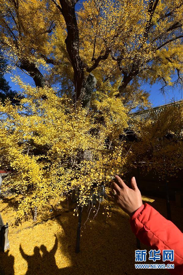 11月11日,人們?cè)诖笥X(jué)寺內(nèi)觀賞古銀杏樹(shù)。新華社記者尹棟遜攝