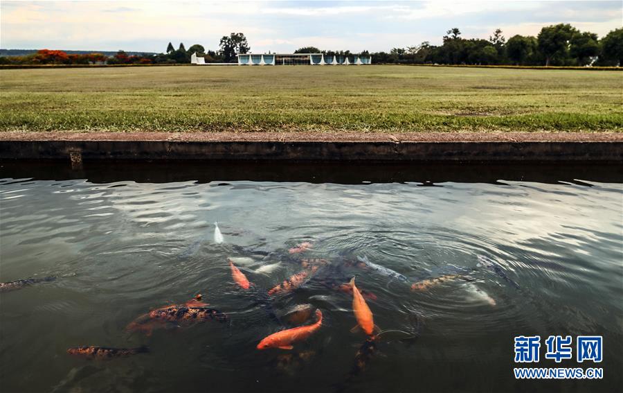 這是11月2日拍攝的位于巴西首都巴西利亞的總統(tǒng)府水池中的中國錦鯉。新華社記者 蘭紅光 攝