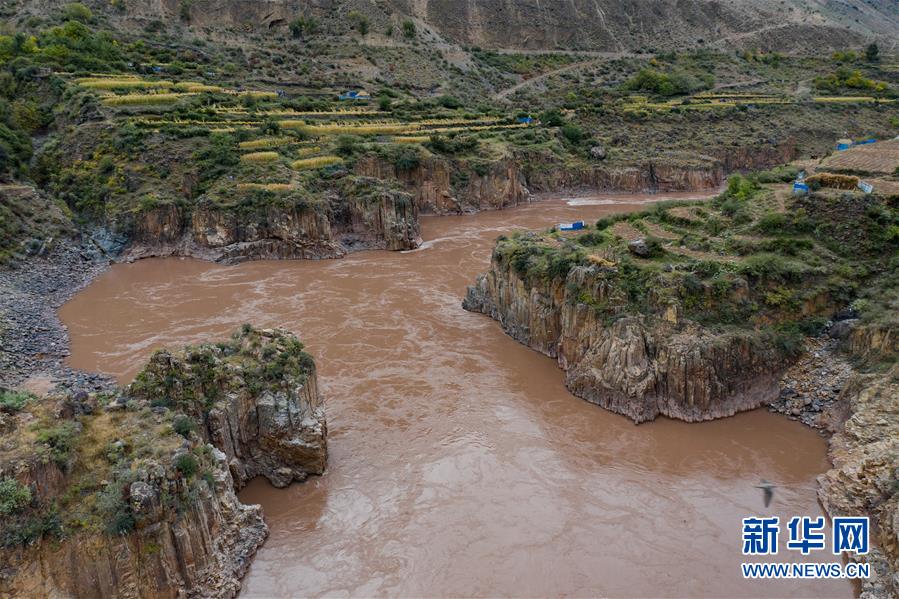 在西藏芒康縣如美鎮(zhèn)俯瞰318國道邊的瀾滄江(10月23日無人機拍攝)。新華社記者江宏景攝