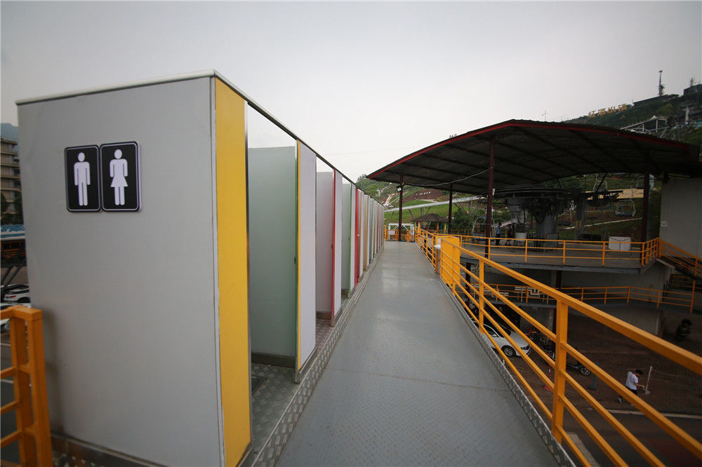 2018年5月5日,重慶涪陵紅酒小鎮(zhèn)一過街天橋上修建了一排“無性別公廁”,過往民眾稱這完全像是“空中廁所”。據(jù)悉,修建露天公廁主要是緩解該景區(qū)游客入廁難的問題。蘇志剛/視覺中國(guó)