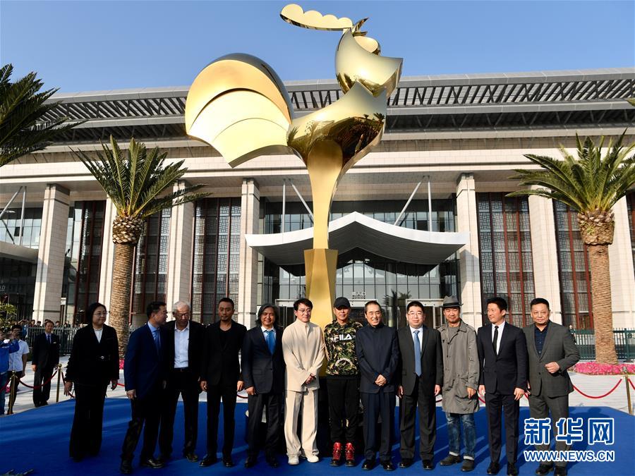 11月19日,嘉賓出席第28屆金雞百花電影節(jié)金雞雕塑揭幕儀式。新華社記者姜克紅攝