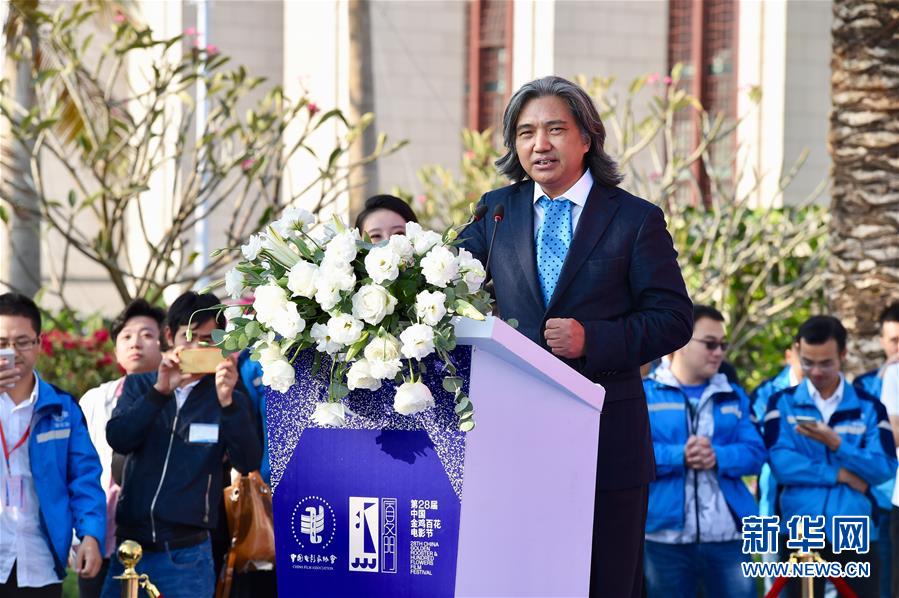 11月19日,金雞雕塑設計者、中國美術館館長吳為山在第28屆金雞百花電影節(jié)金雞雕塑揭幕儀式上致辭。新華社記者姜克紅攝