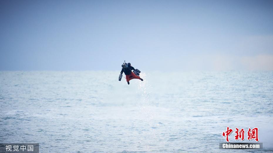 11月18日訊,英國布萊頓,英國發(fā)明家理查德·布朗寧穿著一套由身體控制、噴氣發(fā)動機驅(qū)動、風力導(dǎo)向的飛行服,以高達每小時85.06英里(約137公里)的飛行速度,打破了自己創(chuàng)下的噴氣式飛行服速度的吉尼斯世界紀錄。圖片來源:視覺中國