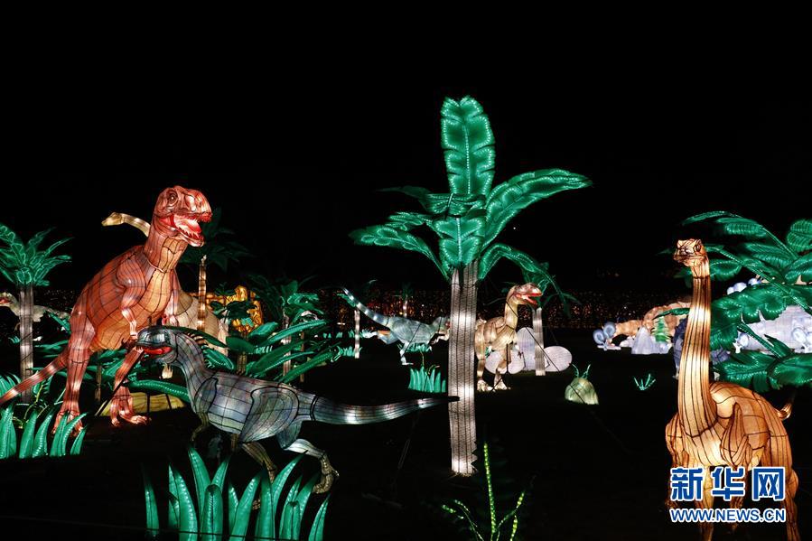 這是11月20日在美國紐約斯塔滕島第二屆紐約花燈游園會上拍攝的恐龍花燈。當(dāng)日,第二屆紐約花燈游園會在美國紐約斯塔滕島開幕,50余組各類花燈照亮夜空,吸引觀眾前來賞燈游玩。新華社記者李木子攝