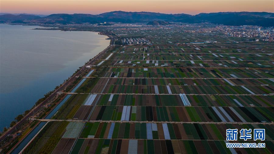 這是云南省玉溪市通海縣的田園風(fēng)光(11月23日無人機(jī)拍攝)。初冬時(shí)節(jié),云南省玉溪市通??h風(fēng)景秀麗,山巒、湖水與農(nóng)田組成了一幅美麗的田園詩畫卷。新華社記者胡超攝