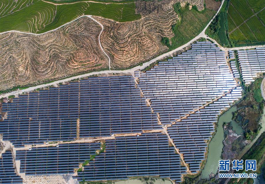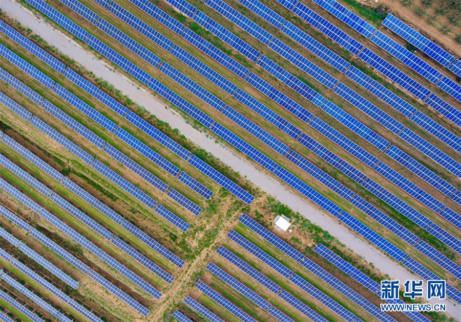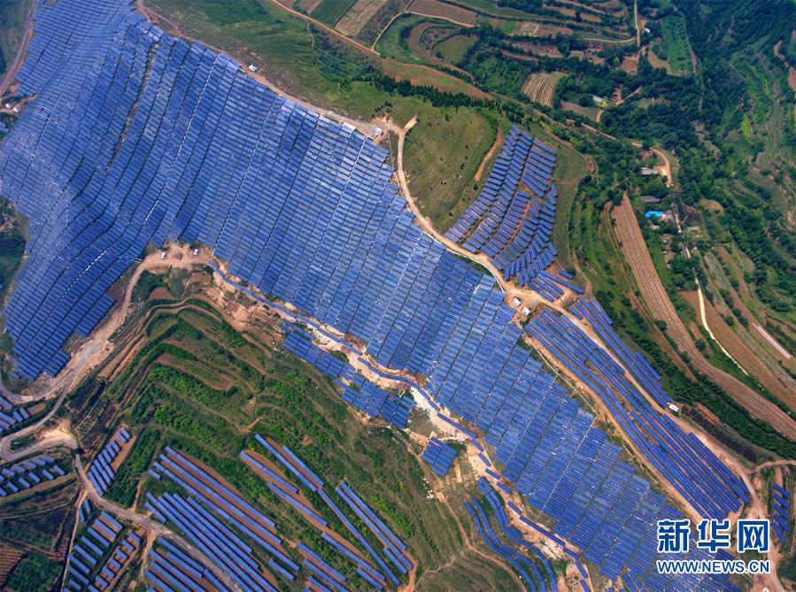這是7月5日拍攝的山西省運城市芮城縣光伏領跑技術基地(無人機拍攝)。新華社記者曹陽攝