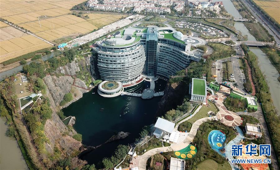 這是位于上海松江佘山腳下的世茂洲際酒店(11月13日無人機拍攝)。位于上海松江的世茂洲際酒店11月15日正式開門營業(yè)。這家在一個廢棄采石礦坑內建成的酒店成為上海又一新景。新華社記者方喆攝