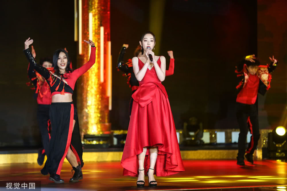 蔣夢(mèng)婕一身紅裝美麗迷人。
