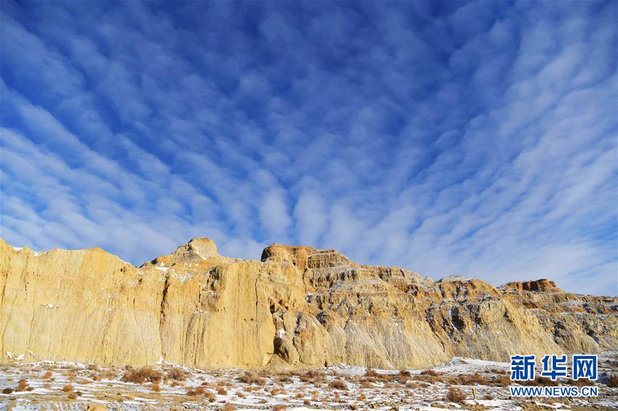 11月26日拍攝的新疆福??h烏倫古湖海上魔鬼城景區(qū)美景。福??h烏倫古湖海上魔鬼城景區(qū)位于新疆阿勒泰地區(qū)福海縣吉力湖東岸,有著獨(dú)特的雅丹地貌和水域景觀(guān),是當(dāng)?shù)刂穆糜蝿俚?。新華社記者沙達(dá)提攝