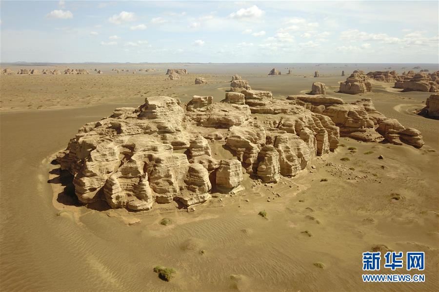 這是5月8日無人機拍攝的敦煌雅丹國家地質(zhì)公園雨后景色。
