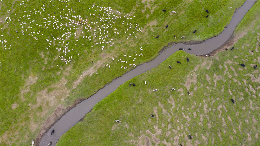2019年8月7日,青海,航拍草原風光。