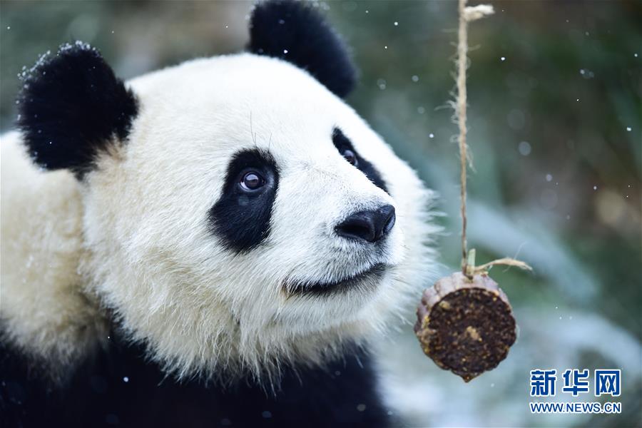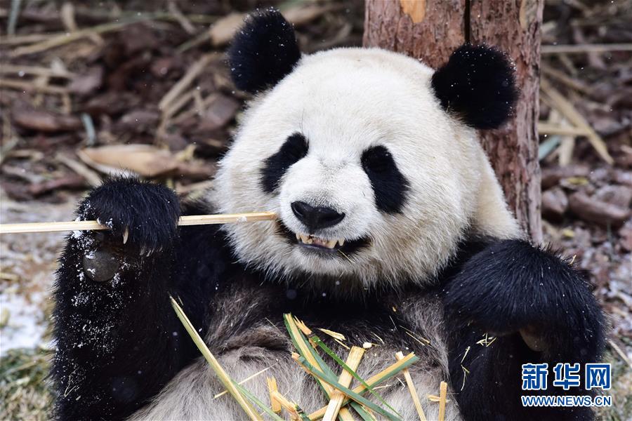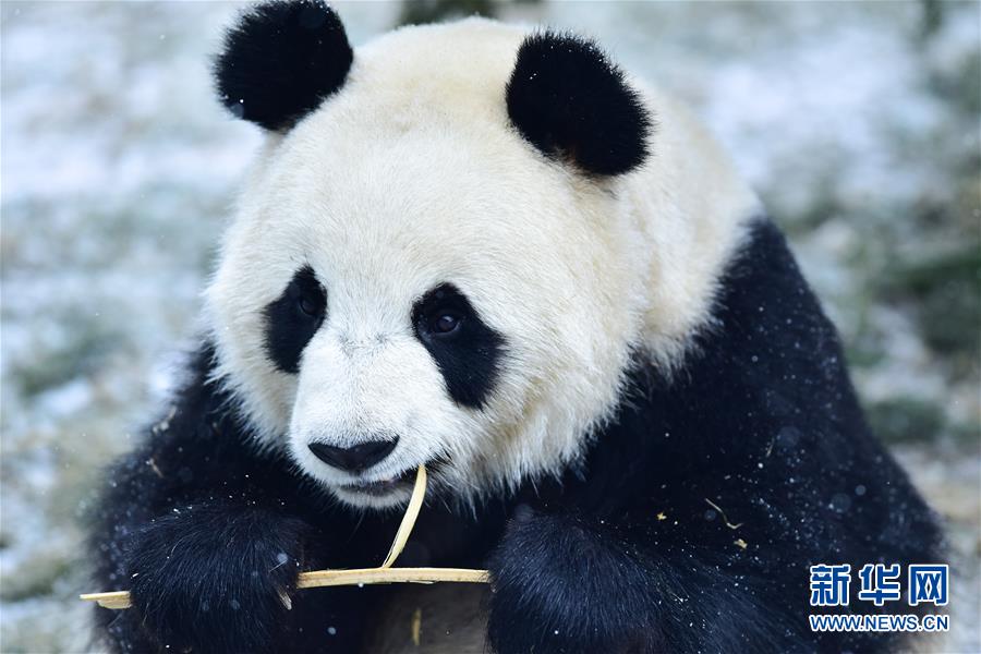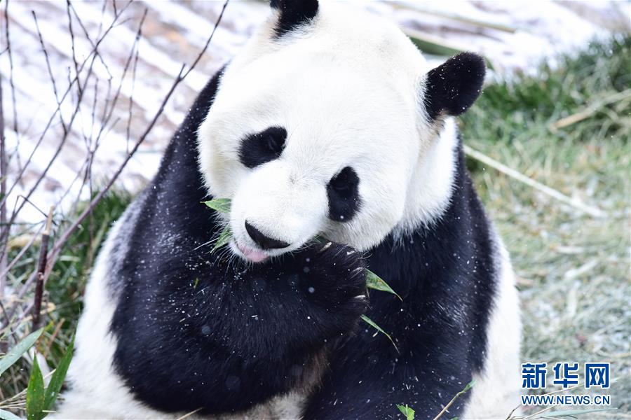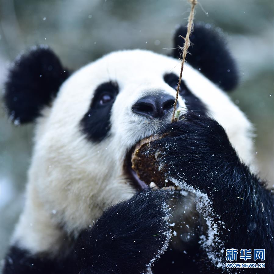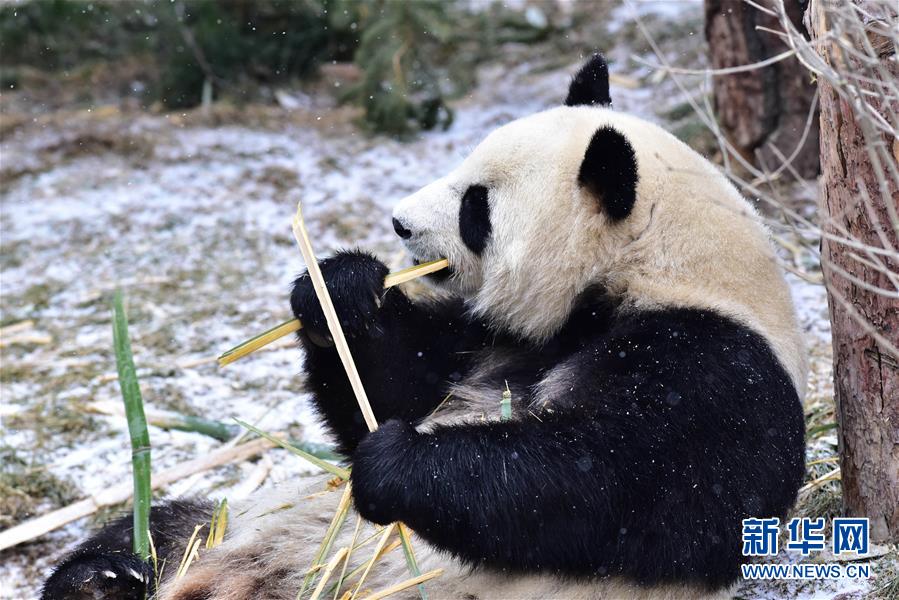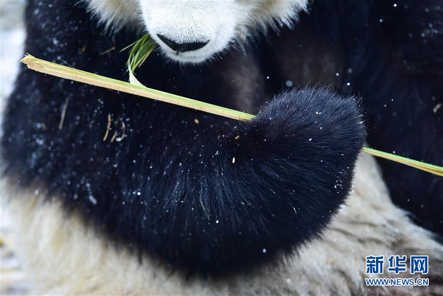 11月29日,在西寧熊貓館內(nèi),兩只大熊貓?jiān)诔灾褡印?當(dāng)日,青海省西寧市迎來降雪,西寧熊貓館四只“萌寵”大熊貓?jiān)谘┨炖锵硎苤灾褡拥臉啡ぁ?jù)了解,大熊貓生活的適宜溫度在26攝氏度至零下5攝氏度之間,冬季氣溫低于零下5攝氏度時(shí),場(chǎng)館會(huì)啟用保暖設(shè)施。 新華社記者 吳剛 攝