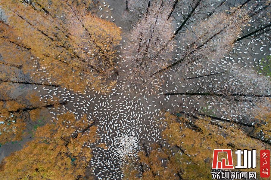 江蘇泗洪5000多只鵝林場(chǎng)吃食,場(chǎng)面壯觀。