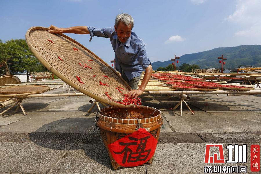 2019年9月9日,安徽黃山,呈坎古村村民在曬場上晾曬農(nóng)作物。