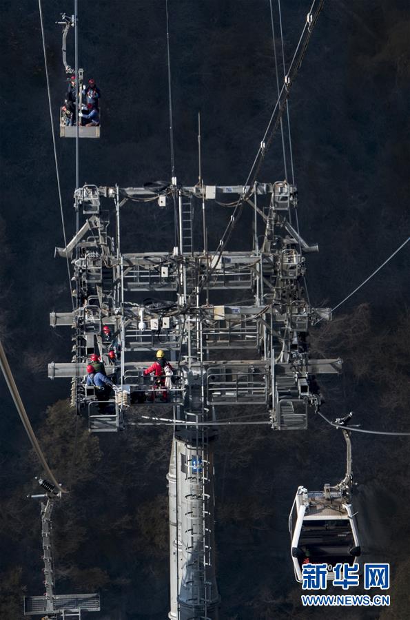 華山太華索道維修人員對索道支架及鋼絲繩進(jìn)行檢測(12月6日攝)。新華社記者陶明攝