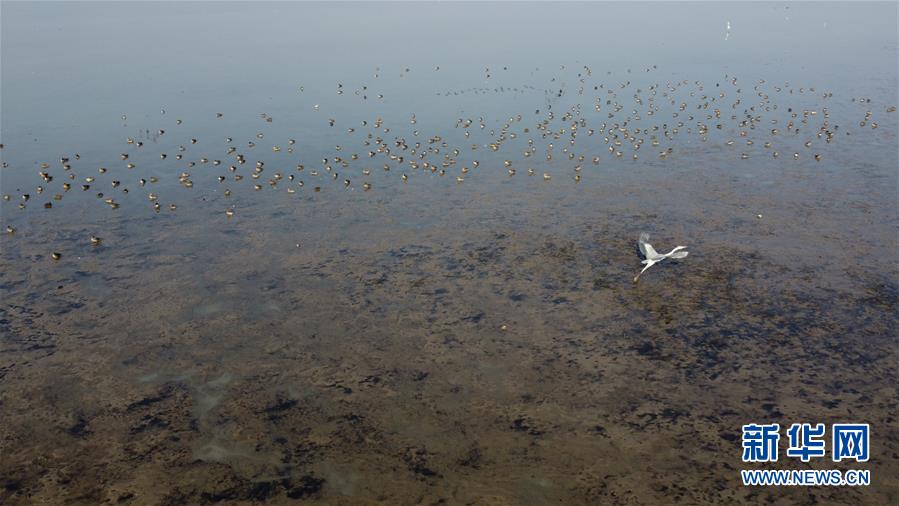 12月7日,一群候鳥在升金湖停留(無人機拍攝)。