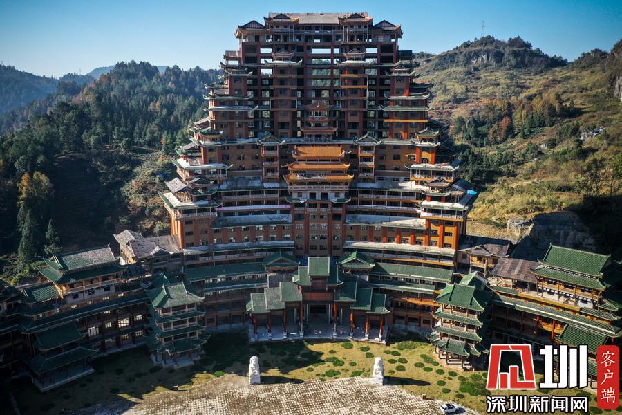 2019年12月8日,貴州省黔南布衣族自治州。位于獨山縣影山鎮(zhèn)凈心谷的水司府堂占地面積5900平方米,總建筑面積60000平方米,共24層,高99米,進深240米,是世界上最高最大最壯觀的水族建筑,被稱為“天下第一水司樓”。