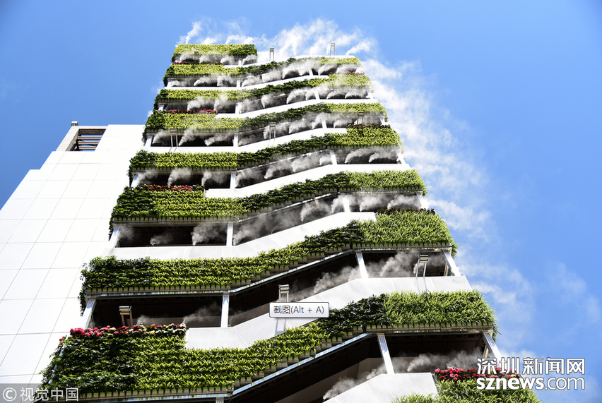 “仙氣飄飄”、“西安天氣有多熱,房子都冒煙了”,這是一段抖音小視頻里網(wǎng)友的評論留言。視頻中一棟10層高的樓外側(cè)樓梯處掛滿了綠植,同時綠植上方還有噴霧。藍藍的天空當做背景,引來不少人上前拍照,配著背景音樂的確讓人感覺清涼無比。