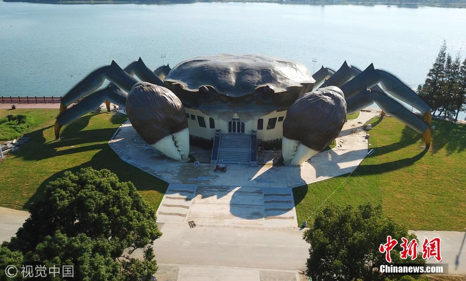 據(jù)了解,這是建造中的大閘蟹生態(tài)館,預計未來將在大閘蟹的白肚內(nèi)容納三層空間,集休閑、娛樂,以及有關(guān)大閘蟹體驗于一體的設(shè)施。圖片來源:視覺中國