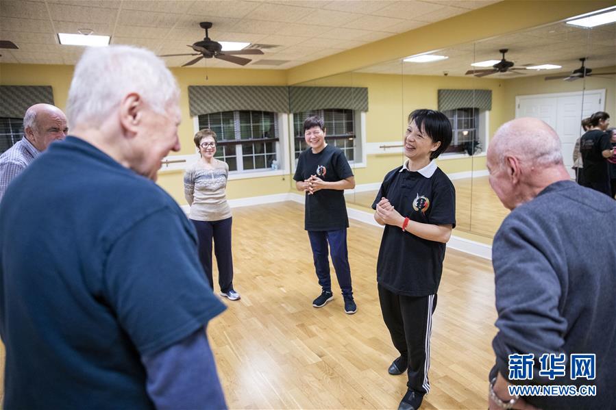 陳思坦的夫人林旭在位于美國(guó)紐約長(zhǎng)島的一所社區(qū)老年活動(dòng)中心指導(dǎo)老人練習(xí)太極(11月20日攝)。這里是陳思坦夫婦開(kāi)設(shè)的一個(gè)公益教學(xué)項(xiàng)目。11月的紐約已進(jìn)入初冬,位于美國(guó)紐約長(zhǎng)島的思坦太極武術(shù)中心依然一片紅火景象,學(xué)員們從5歲的孩童到80多歲的老人,操練著太極拳、太極劍、長(zhǎng)拳等武術(shù)招式。這里的主人陳思坦、林旭夫婦,也從早忙到晚,精心指導(dǎo)每一位學(xué)員的一招一式。6歲習(xí)武,22歲成為中國(guó)全國(guó)冠軍,26歲獲得首個(gè)世界冠軍……直到30歲退役,陳思坦在運(yùn)動(dòng)員生涯中曾獲得過(guò)32次國(guó)內(nèi)外各類(lèi)武術(shù)大賽冠軍。36歲那年,懷著以太極拳和中國(guó)武術(shù)為媒介向世界推廣中國(guó)文化的夢(mèng)想,陳思坦到美國(guó)紐約尋找新的舞臺(tái)。經(jīng)過(guò)十多年的艱苦打拼,陳思坦夫婦目前在紐約長(zhǎng)島、法拉盛和曼哈頓都開(kāi)設(shè)了長(zhǎng)期的課程,思坦太極注冊(cè)在編的各個(gè)年齡段的學(xué)員近千人,有些“高徒”現(xiàn)在自己也開(kāi)班授課,將太極推向更多地方。陳思坦夫婦現(xiàn)在思考更多的是如何將太極和武術(shù)推廣給更多的美國(guó)人,并讓他們理解其中蘊(yùn)含的平衡、和諧的中國(guó)文化理念。他們創(chuàng)辦了紐約太極健身氣功活動(dòng)日,在各類(lèi)學(xué)校和社區(qū)開(kāi)設(shè)太極或者武術(shù)課程,并利用美國(guó)的亞太裔文化月和多元文化節(jié)舉行武術(shù)和太極表演和體驗(yàn)課程,讓更多美國(guó)人親眼看到、親身體會(huì)中國(guó)武術(shù)的魅力。從2011年起,他們還參與創(chuàng)辦了紐約太極大賽,如今已舉行九屆,吸引了美國(guó)、加拿大和中國(guó)國(guó)內(nèi)的隊(duì)伍參賽,影響力逐漸擴(kuò)大。新華社記者王迎攝