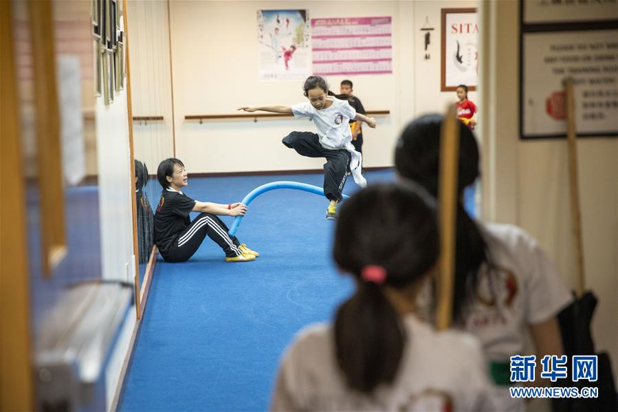 陳思坦的夫人林旭在位于美國紐約長島的思坦太極武術中心指導小學員練習武術(11月20日攝)。11月的紐約已進入初冬,位于美國紐約長島的思坦太極武術中心依然一片紅火景象,學員們從5歲的孩童到80多歲的老人,操練著太極拳、太極劍、長拳等武術招式。這里的主人陳思坦、林旭夫婦,也從早忙到晚,精心指導每一位學員的一招一式。6歲習武,22歲成為中國全國冠軍,26歲獲得首個世界冠軍……直到30歲退役,陳思坦在運動員生涯中曾獲得過32次國內(nèi)外各類武術大賽冠軍。36歲那年,懷著以太極拳和中國武術為媒介向世界推廣中國文化的夢想,陳思坦到美國紐約尋找新的舞臺。經(jīng)過十多年的艱苦打拼,陳思坦夫婦目前在紐約長島、法拉盛和曼哈頓都開設了長期的課程,思坦太極注冊在編的各個年齡段的學員近千人,有些“高徒”現(xiàn)在自己也開班授課,將太極推向更多地方。陳思坦夫婦現(xiàn)在思考更多的是如何將太極和武術推廣給更多的美國人,并讓他們理解其中蘊含的平衡、和諧的中國文化理念。他們創(chuàng)辦了紐約太極健身氣功活動日,在各類學校和社區(qū)開設太極或者武術課程,并利用美國的亞太裔文化月和多元文化節(jié)舉行武術和太極表演和體驗課程,讓更多美國人親眼看到、親身體會中國武術的魅力。從2011年起,他們還參與創(chuàng)辦了紐約太極大賽,如今已舉行九屆,吸引了美國、加拿大和中國國內(nèi)的隊伍參賽,影響力逐漸擴大。新華社記者王迎攝