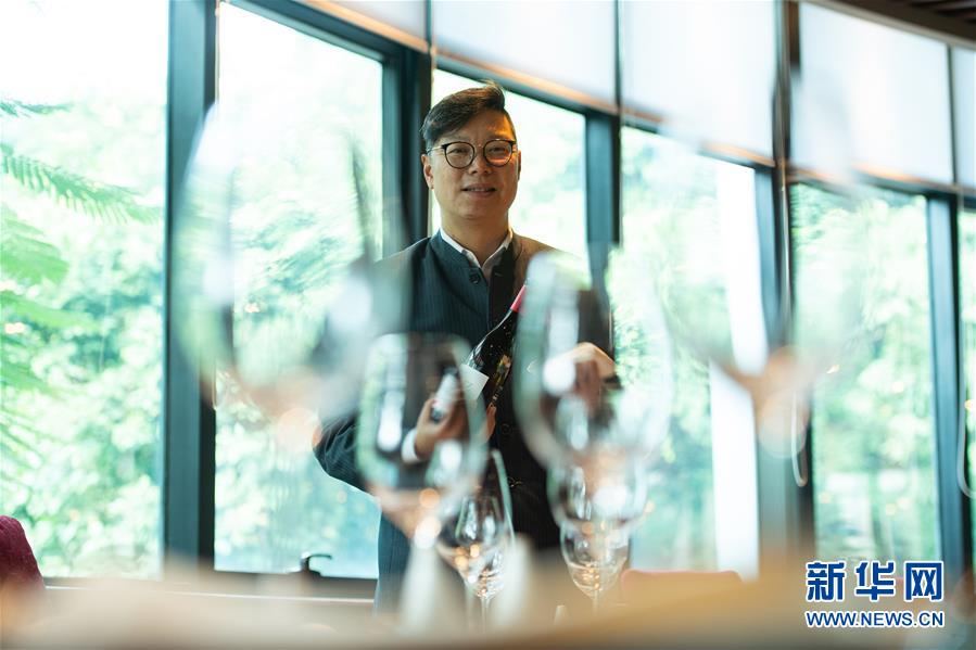 11月26日,澳門旅游學(xué)院教學(xué)餐廳的曾日升在餐廳內(nèi),他已經(jīng)工作了22年,主要負責處理餐廳事項及教導(dǎo)學(xué)生。 新華社記者 張金加 攝