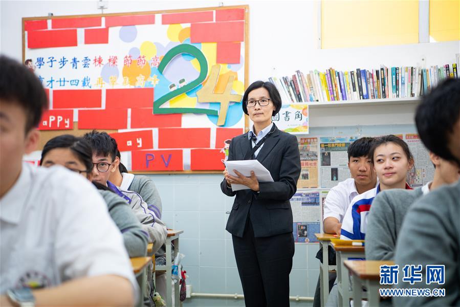 11月26日,澳門培華中學(xué)教師袁金淑在教室內(nèi),她已經(jīng)工作了20年,主要負責數(shù)學(xué)及公民教育。 新華社記者 張金加 攝