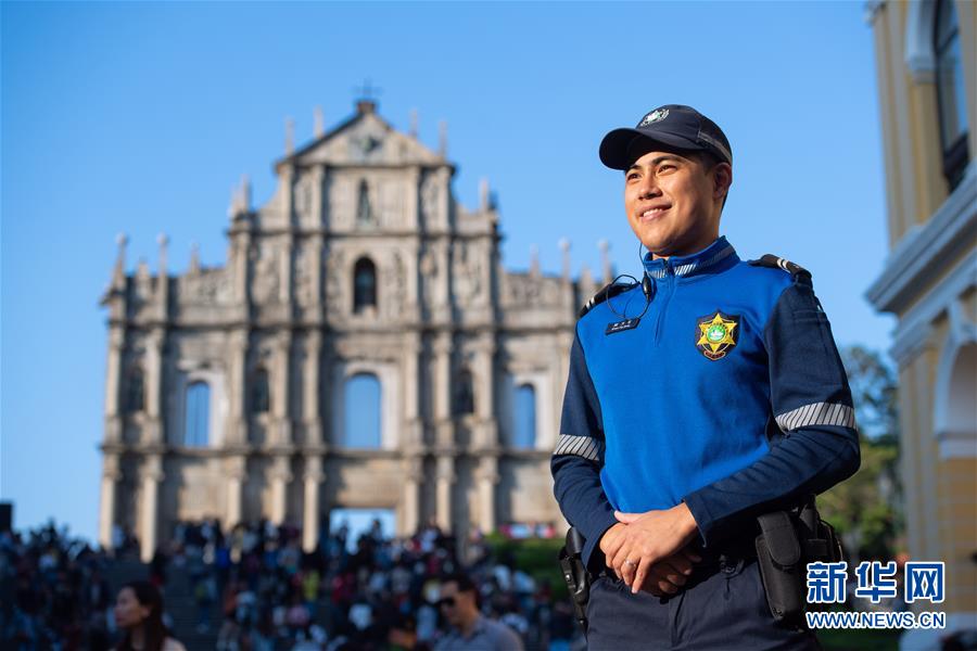 11月28日,澳門治安警察局旅游警察關(guān)天恒在大三巴牌坊附近巡邏,他已經(jīng)工作了2年,主要負責維持社會治安及解答游客問題。 新華社記者 張金加 攝