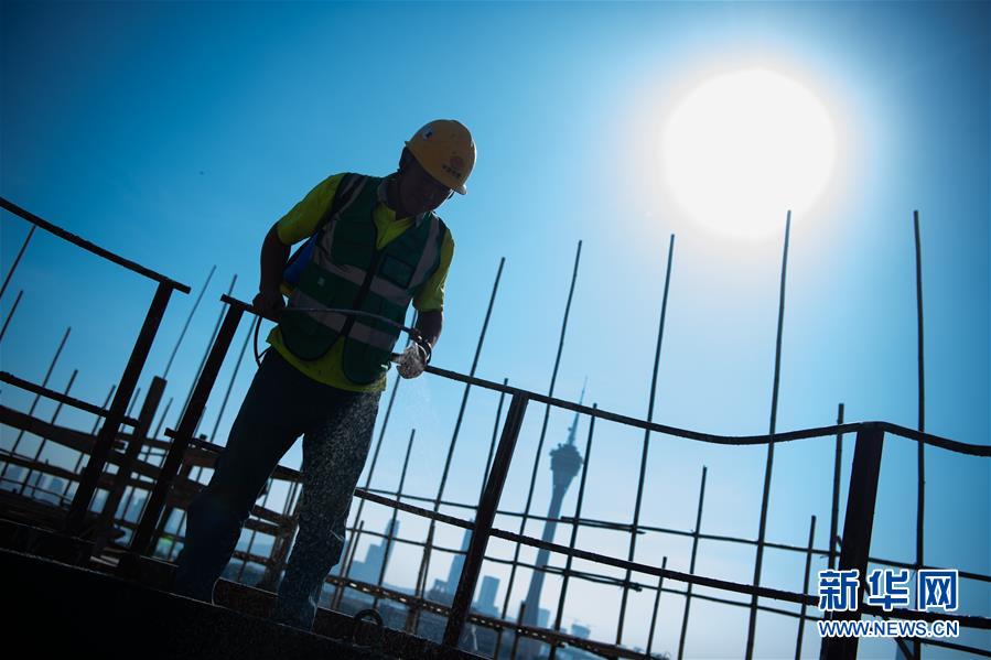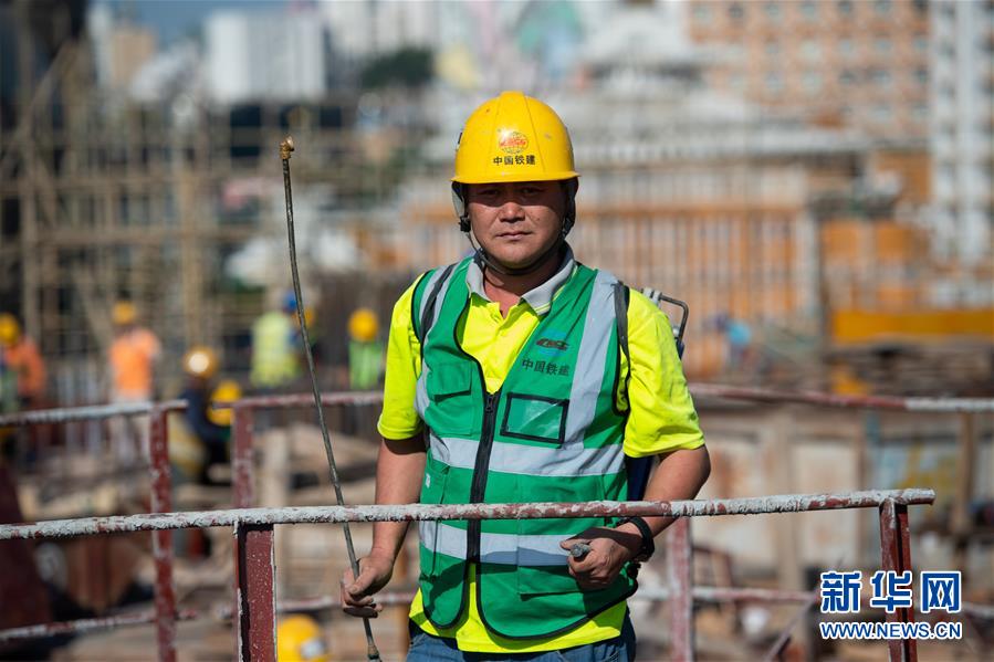 11月22日,澳門工地工人何錦在工地上,他已經(jīng)工作了25年,主要負責處理工地事項。 新華社記者 張金加 攝