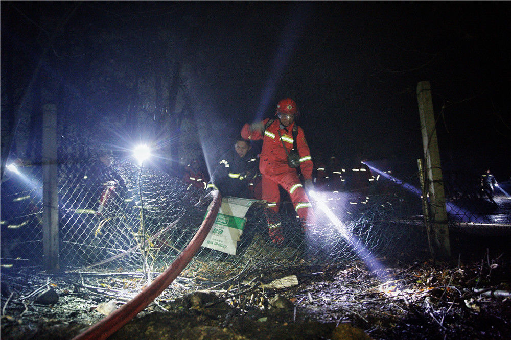 2019年12月7日凌晨一時多,廣東佛山,來自英德東華鎮(zhèn)的消防員們摸黑上山作業(yè)。經(jīng)過大約一個小時的奮戰(zhàn)后,山頭明火得到有效控制。