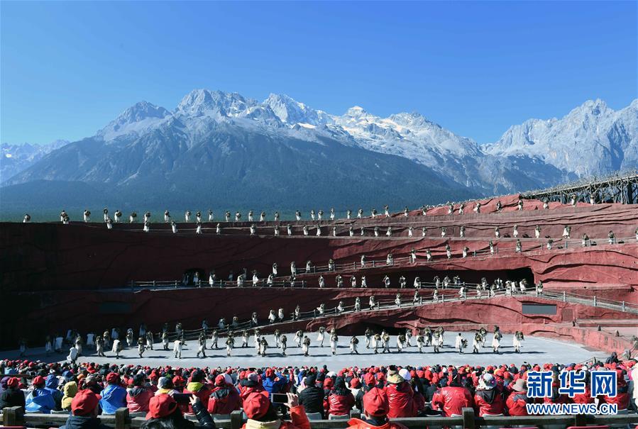 12月10日,游客在玉龍雪山下觀看大型實景演出。新華社記者楊宗友攝