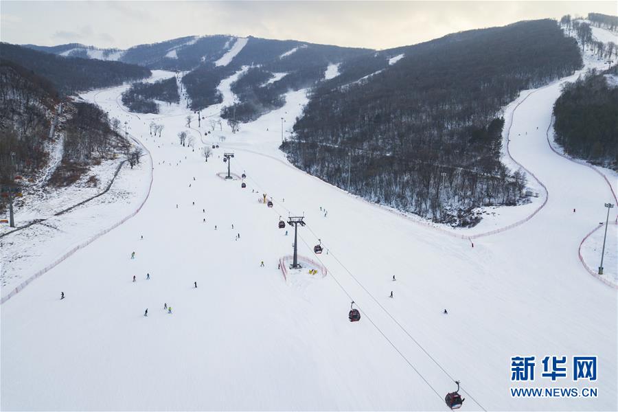空中俯瞰吉林市萬科松花湖度假區(qū)滑雪場(chǎng)(12月13日無人機(jī)拍攝)。新華社記者 張豪夫 攝