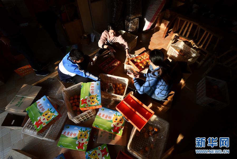 12月13日,廣西柳州市鹿寨縣一家土特產(chǎn)銷(xiāo)售公司員工在包裝蜜橙,準(zhǔn)備通過(guò)電商銷(xiāo)售。新華社記者 黃孝邦 攝