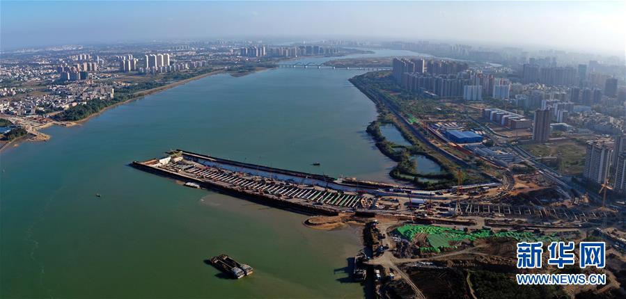 正在施工的??谖拿鳀|越江通道項目(12月14日無人機(jī)拍攝)。 海口文明東越江通道項目是連接??谥鞒菂^(qū)和江東新區(qū)的重要紐帶,2018年底開工,全長4.38千米,其中隧道段2.72千米。據(jù)了解,目前項目總工程量已過半,將力爭在2020年4月份建成并實現(xiàn)功能性通車。 新華社記者 郭程 攝