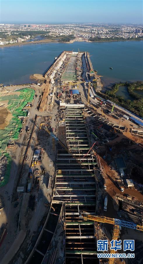 正在施工的??谖拿鳀|越江通道項目(12月14日無人機拍攝)。 ??谖拿鳀|越江通道項目是連接??谥鞒菂^(qū)和江東新區(qū)的重要紐帶,2018年底開工,全長4.38千米,其中隧道段2.72千米。據(jù)了解,目前項目總工程量已過半,將力爭在2020年4月份建成并實現(xiàn)功能性通車。 新華社記者 郭程 攝