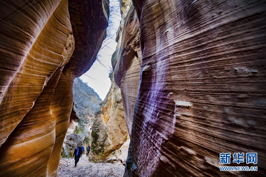 12月17日,游人在志丹縣雙河鎮(zhèn)毛項峽谷內(nèi)游覽。毛項峽谷位于陜西省延安市志丹縣雙河鎮(zhèn)毛項村,峽谷全長12公里,分為9段,曲折綿延,谷內(nèi)石壁凹凸不平,其中最窄處只能容一人側(cè)身通過,堪稱黃土高原上的自然奇觀。新華社記者陶明攝