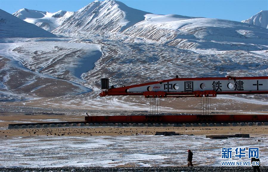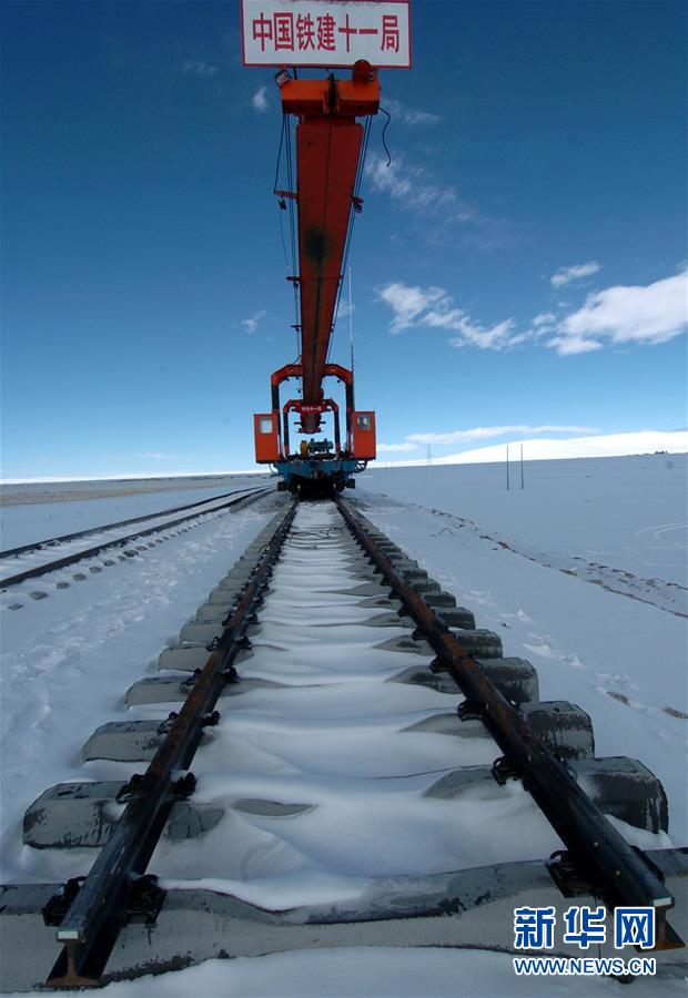 青藏鐵路在鋪軌建設(shè)中(2004年12月5日攝)。新華社記者覺(jué)果攝