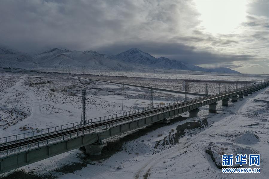 這是12月16日無(wú)人機(jī)拍攝的敦煌鐵路大柴旦站附近的一處鐵路橋。新華社記者張龍攝