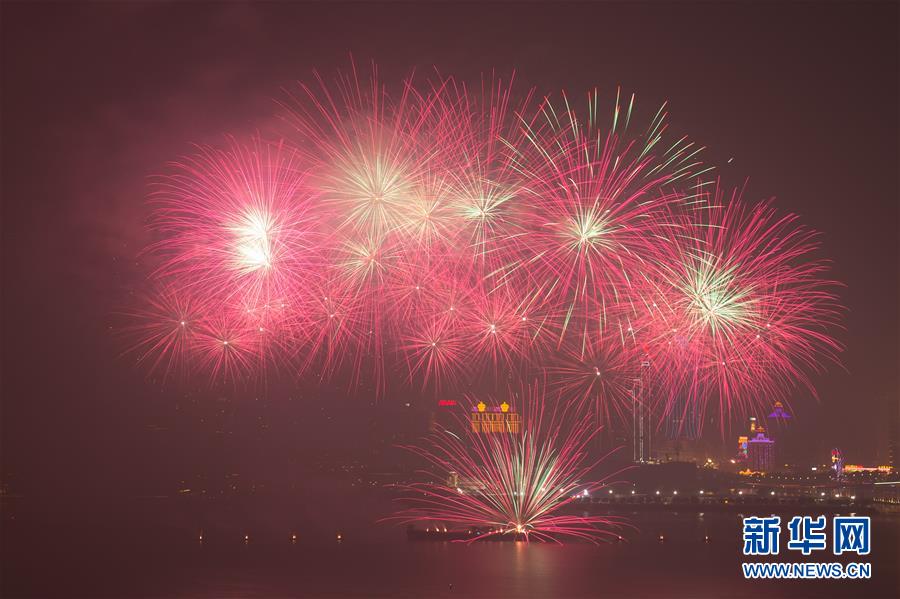 12月22日,煙花在澳門上空綻放。當(dāng)晚,澳門與珠海首次聯(lián)合舉行煙花匯演,慶祝澳門回歸祖國20周年。新華社記者張金加攝