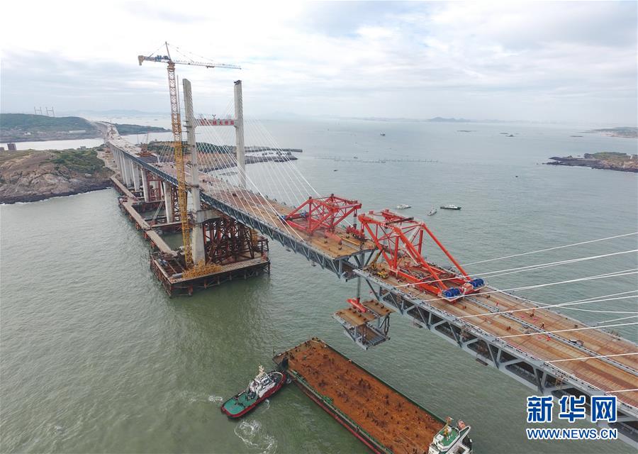 9月21日,平潭海峽公鐵大橋鼓嶼門航道橋的鋼桁梁在吊裝中(無人機(jī)拍攝)。9月25日上午,隨著一段長17米、重473噸的鋼桁梁被精確固定到位,總長16.34公里的平潭海峽公鐵大橋合龍貫通。平潭海峽公鐵大橋是福州至平潭鐵路控制性工程,也是“十三五”規(guī)劃中北京至臺灣高鐵的先期工程。大橋起于福州市長樂區(qū),“踏”過四座小島后抵達(dá)中國第五大島平潭,上層設(shè)計為時速100公里的六車道高速公路,下層為設(shè)計時速200公里的高鐵。據(jù)福建福平鐵路公司介紹,大橋計劃2020年正式通車。在六年建設(shè)過程中,平潭海峽公鐵大橋所應(yīng)用研發(fā)的多項技術(shù)、裝備創(chuàng)下國內(nèi)外紀(jì)錄。新華社記者林善傳攝