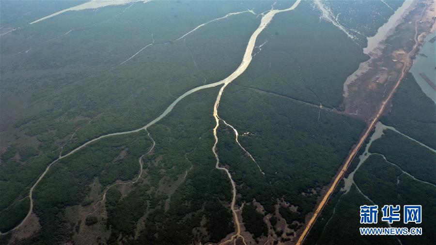 12月21日無人機(jī)拍攝的廣西合浦縣黨江鎮(zhèn)更螺圍出??谝痪啊6?,廣西廉州灣海域風(fēng)光別致。新華社記者張愛林?jǐn)z