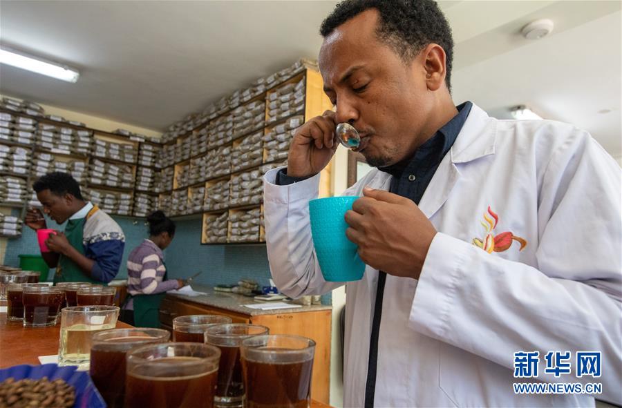2019年10月23日,在位于埃塞俄比亞首都亞的斯亞貝巴郊外的卡辰什咖啡加工廠內(nèi),卡辰什咖啡質(zhì)量和市場(chǎng)總監(jiān)阿斯納克·卡薩在杯測(cè)室參與咖啡的杯測(cè)。卡辰什咖啡是埃塞俄比亞最大的咖啡生產(chǎn)商和出口商之一??ㄋ_表示,中國市場(chǎng)潛力巨大,埃塞俄比亞咖啡在中國市場(chǎng)的占有率不斷增長,進(jìn)博會(huì)對(duì)埃塞俄比亞咖啡出口商來說是一個(gè)很好的機(jī)會(huì)。 新華社記者 張宇 攝